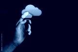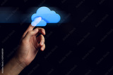 businessman hand touch the digital data of cloud storage internet social network server security online with background for connection technology concept