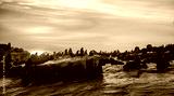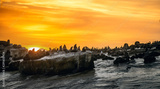 Sunrise at Seal Island. South African (Cape) fur seals (Arctocephalus pusillus pusillus), Colony of cape fur seals. False Bay, Western Cape, South Africa, Africa.