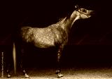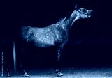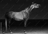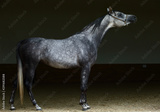 Arabian horse dapple gray mare portrait against dark background