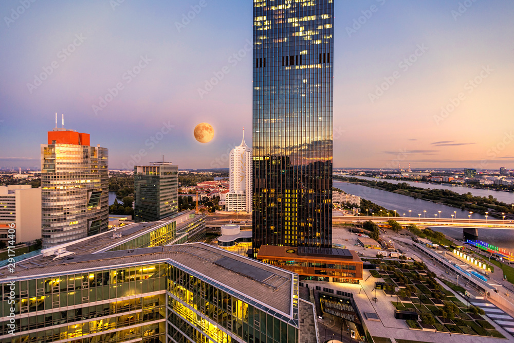 Danube City in Vienna with amazing skyline with the DC Tower at the Danube River
