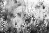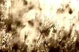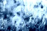 Clear morning in the forest. Frozen blooming heather flowers closeup, Latvia