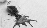 Rotweinglas verschmutzt Teppich.