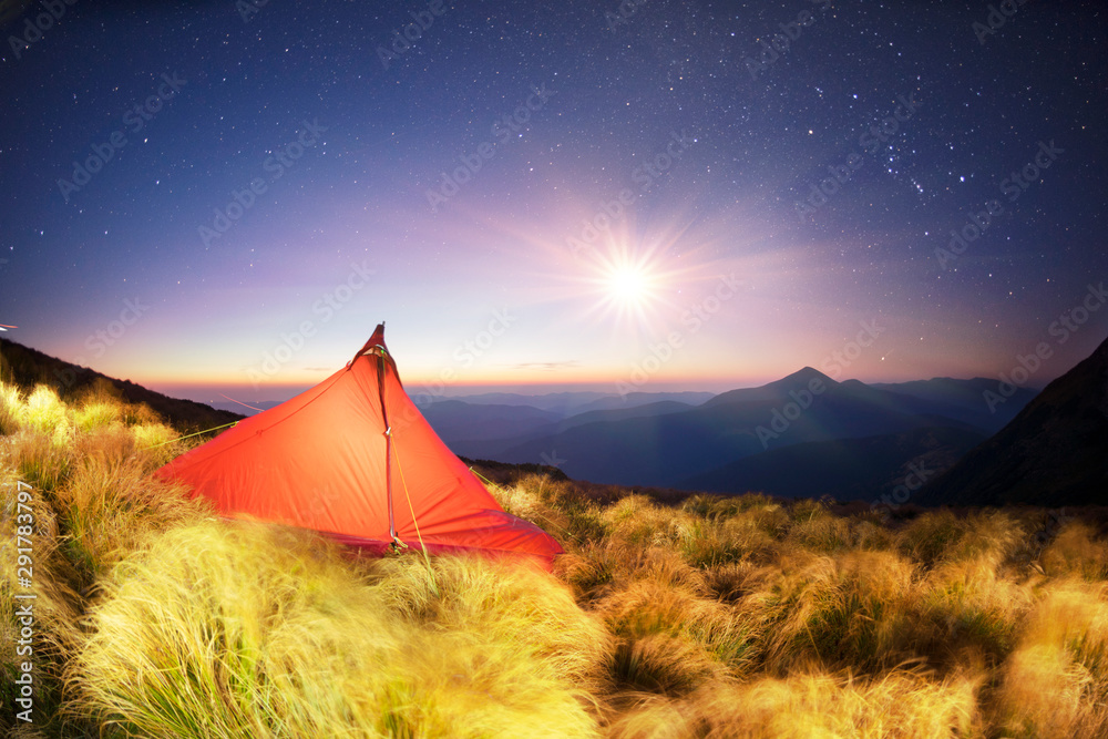 Tent alpine starry night