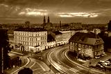 Opole, Poland. Aerial cityscape at dusk