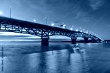 Coleman Bridge - A Summer sunset view of George P. Coleman Memorial Bridge, the largest double-swing-span bridge in U.S., crossing over York River at Yorktown, Virginia, USA.