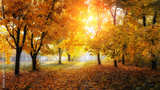 colorful trees and rural road in deep autumn forest, natural background