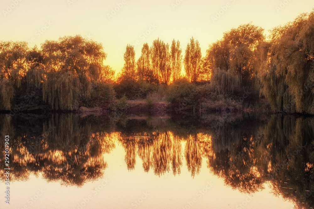 Landscape lake during beautiful sunset