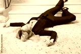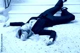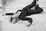 Crime scene. Business woman shot to death on the luxury stairs ..