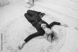 Crime scene. Business woman shot to death on the luxury stairs ..