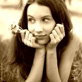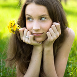 young beautiful teenager with dandelion bouquet