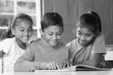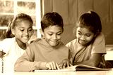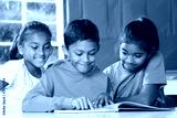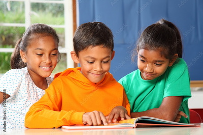 Primary school children in class reading learning