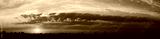 Bright sunlight through the clouds against a breathtaking evening sky at sunset. panorama, natural composition