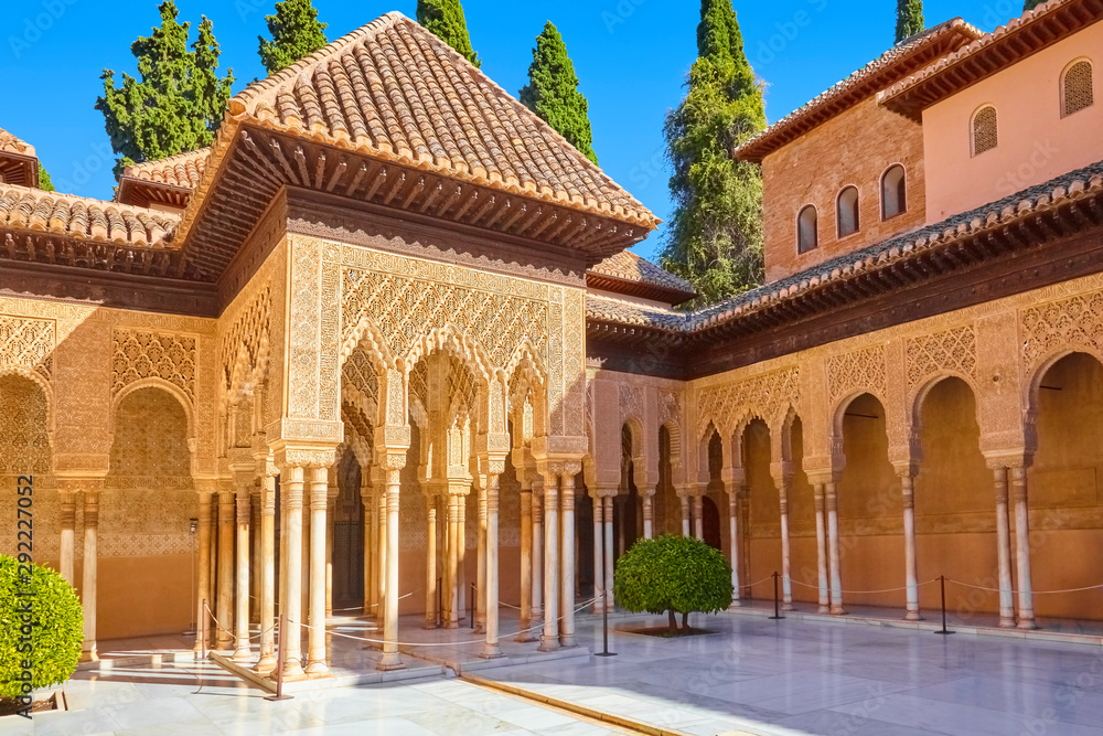 Famous courtyard in the Alhambra with lion court. (Granada, Spain)