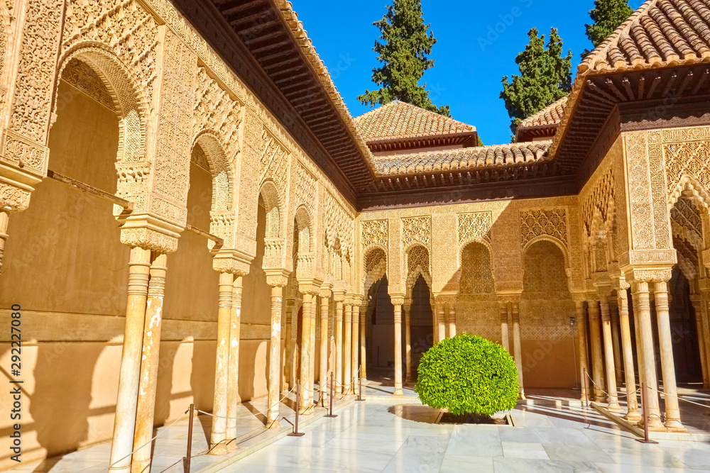 Famous courtyard in the Alhambra with lion court. (Granada, Spain)