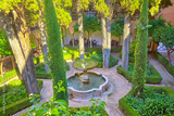 Beautiful fountain in the courtyard in the Alhambra. (Granada, Spain)