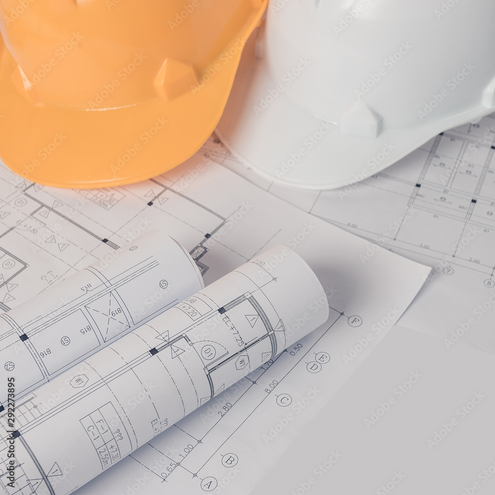 Architect, engineer concept, Represents the working style of architects, engineers With construction drawings