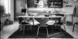 Modern Kitchen Area with Dining Room Integration (panoramic B&W) - 3d visualization