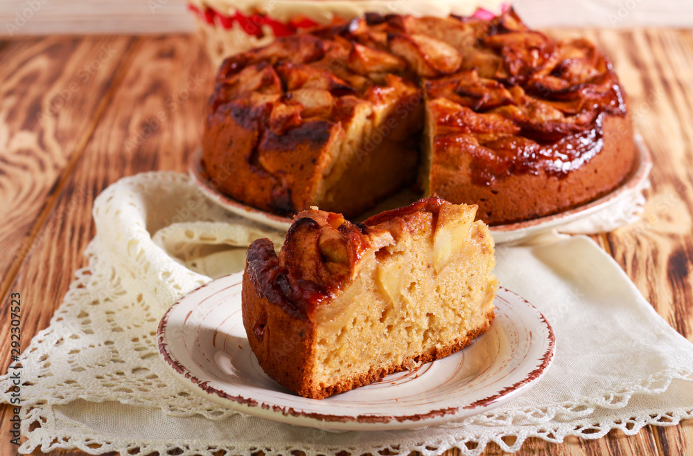 Spicy apple cake, sliced and served
