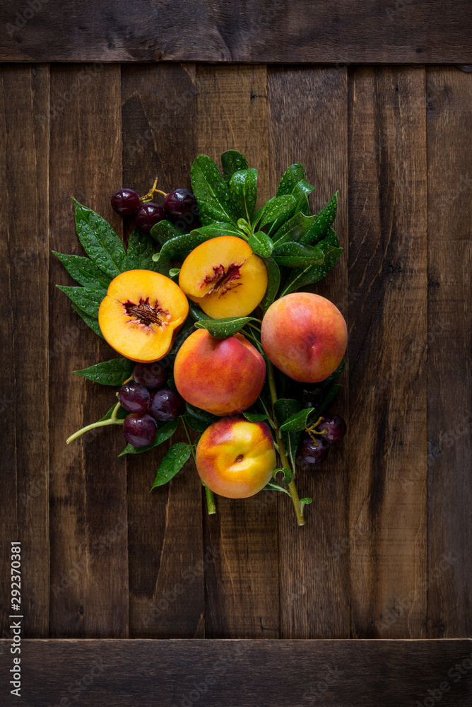 peach on wooden table
