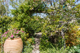 Alley in stones a landscaped garden during spring
