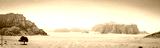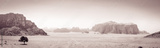 Panoramic Approach to Wadi Rum - Lonley Tree at Lawrence Source (Vintage BW)