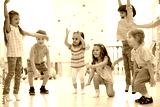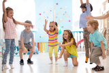 Preschool children group in daycare. Active games for kindergarten kids