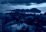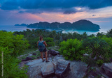 Female Backpacker admires beautiful landscape of the Ko Phi Phi after sunset, Thailand