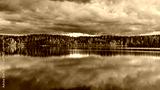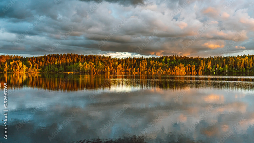 The sunset view by the lakeside next to a campsite Koli Freetime Oy in Finland Lakeland