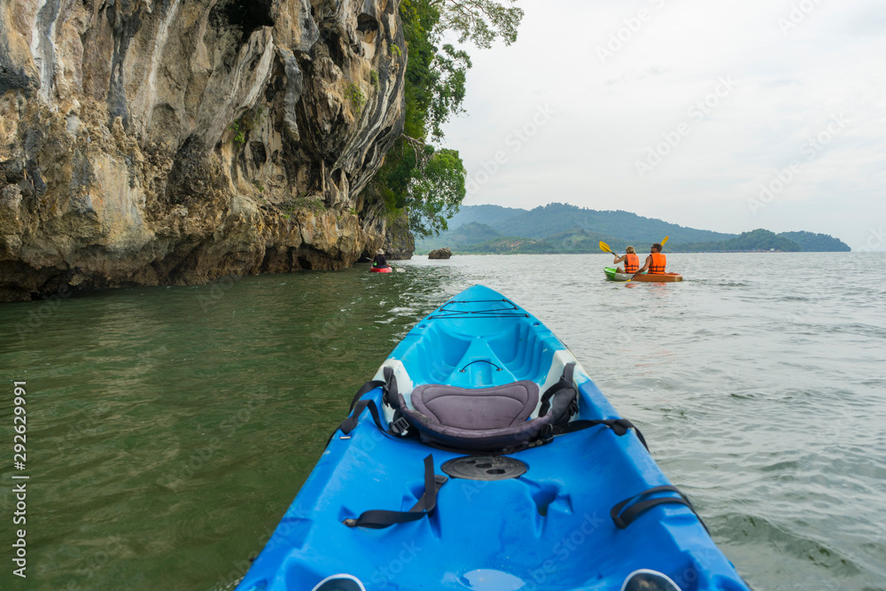 Group of tourists kayaking at Ao tha lane, Krabi, Thailand
