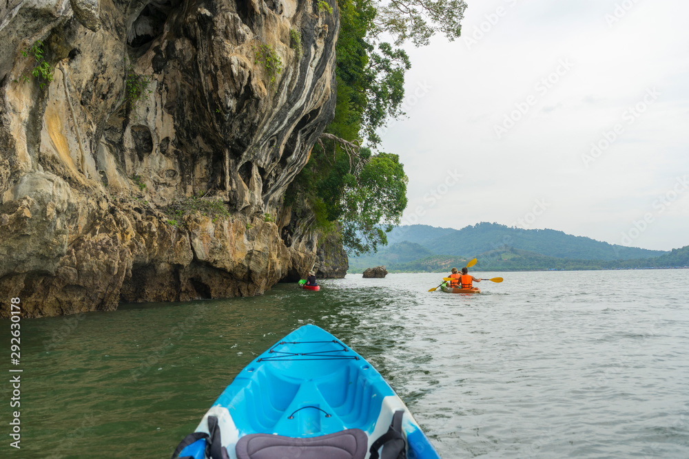 Group of tourists kayaking at Ao tha lane, Krabi, Thailand