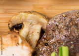 Mixed grilled meats platter closeup.