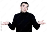 man shrugging hesitant pucker pouting