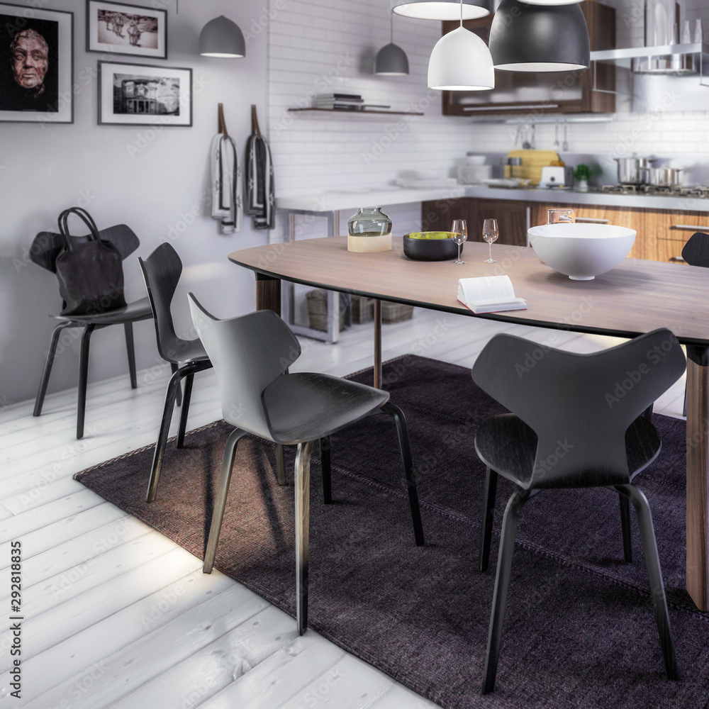 Contemporary Kitchen Area with Dining Room Integration (focused) - 3d visualization