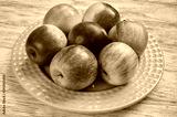 Fresh red fruits. Apples on a green plate on a wooden background.