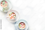Hot Chocolate with Rainbow Marshmallows From Above with Copy Space