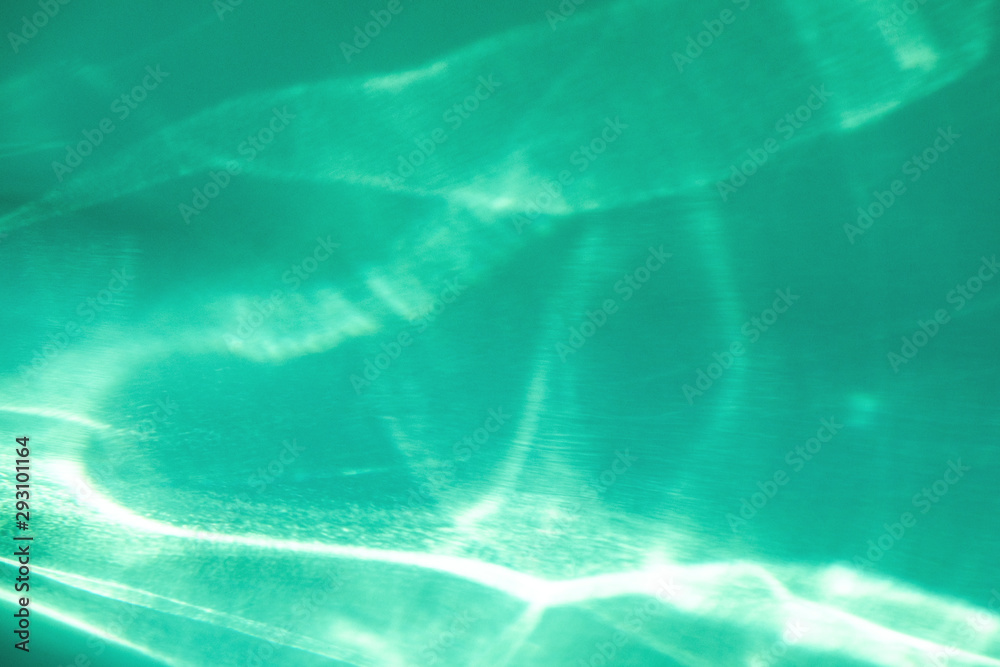 Trendy mint colored abstract background with light and shadows caustic effect. Light passes through a glass.