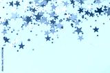 Colorful foil stars confetti sparse on trendy mint colored background. Simple holiday concept. Design template. Frame with copy space for text. Top view, flat lay
