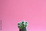 Green cactus plant on pink pastel color background.Trendy tropical mood and tone.Fashion minimal art and Creative style concept.