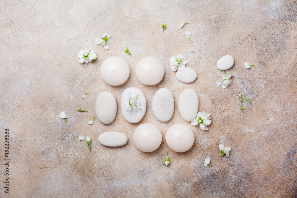 Christmas background. Snowy fir tree branches with fir cones on wooden board. Top view with space for text.