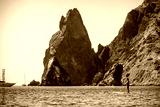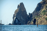 Crimea, Balaklava, September 15, 2019: Jasper beach near Sevastopol and the concept of a beach holiday in Crimea