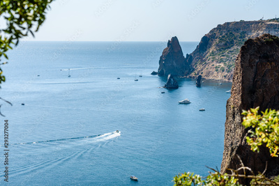 Crimea, Balaklava, September 15, 2019: Jasper beach near Sevastopol and Cape Fiolent