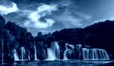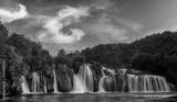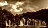 Krka National Park-panorama of the waterfall against the beautiful evening sky,Skradinski Buk Waterfall