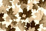 Autumn background with fallen, colorful maple leaves. Closeup, top view.