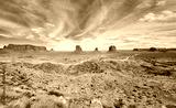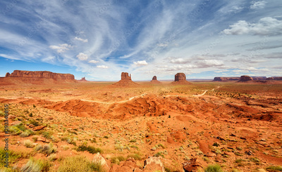 Wide angle view of the Monument Valley landscape, Utah, USA.