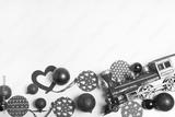 train toy and gift gloss glitter decoration ball hanging with snowflake for merry christmas tree in holiday season greeting of happiness concept background, wish for god bless