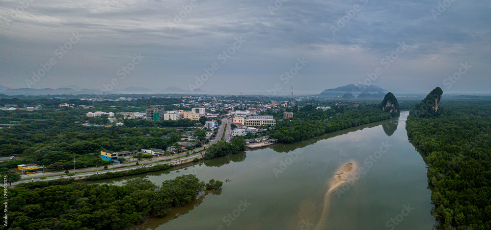 Aerial view of the Khao Khanap Nam in Krabi town, Thailand
