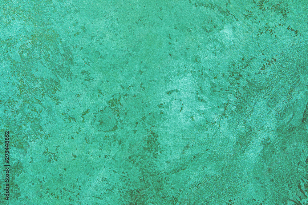 Trendy mint colored low contrast Concrete textured background with roughness and irregularities to your design or product. Color trend concept.