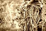 Fresh farm garlic, freshly harvested organic vegetables in in the farmer garden. Vegetable harvest.