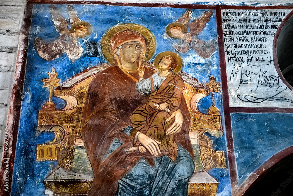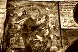 Fragments of frescoes wall paintings on the walls of the Church of the Saviour at Berestove in Kyiv, Ukraine.