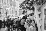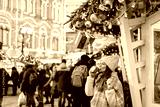 Girl walking on Christmas Market on Red Square in Moscow